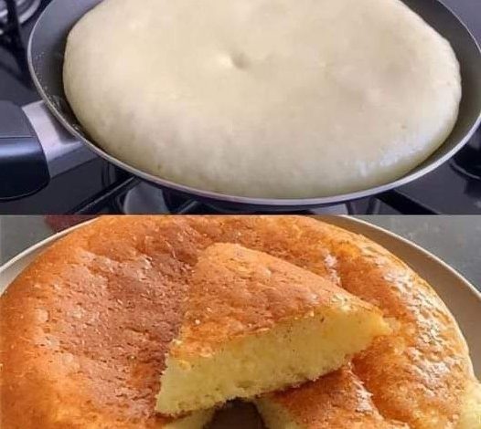 This image captures an unconventional yet increasingly popular method of making a cake—baking it in a frying pan. This technique, often used in regions where access to an oven might be limited, showcases the versatility of cooking tools and methods.