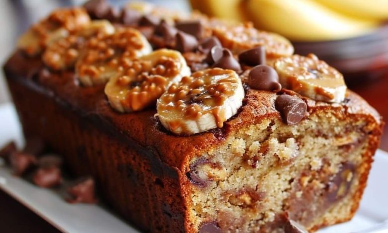 Banana Chocolate Chip Bread with Caramelized Bananas