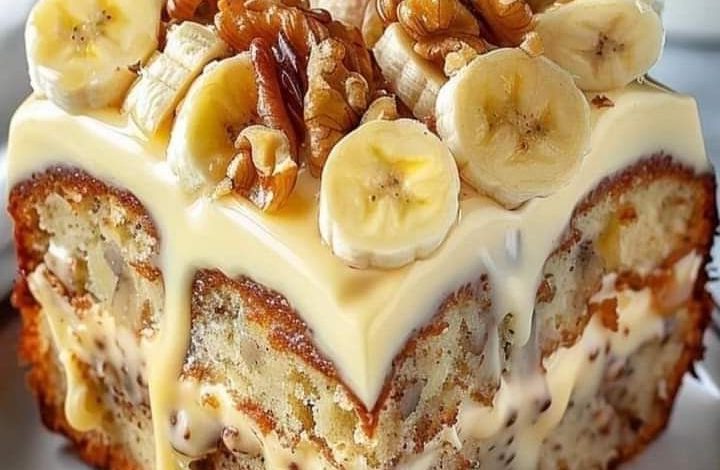 Banana Nut Delight Cake with Creamy Vanilla Glaze