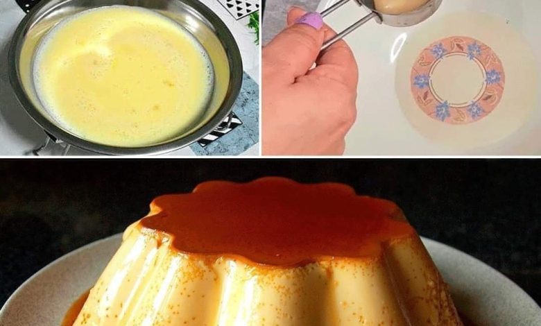 • In a heavy-bottomed saucepan, melt the sugar over medium heat until it turns into a golden caramel. Carefully pour the caramel into the bottom of a heatproof dish or individual ramekins, tilting to coat the bottom evenly.