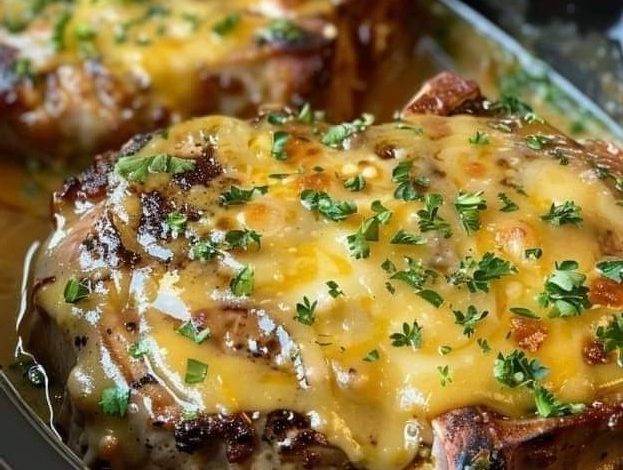 Serve these cheesy baked pork chops with your favorite sides, such as mashed potatoes, steamed vegetables, or a fresh salad.