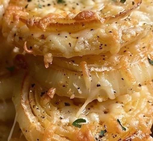 - Sprinkle a bit of Parmesan cheese and mozzarella cheese between the layers as you stack the potatoes.