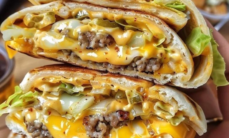 Enjoy your homemade cheesy ground beef crunchwrap supreme!