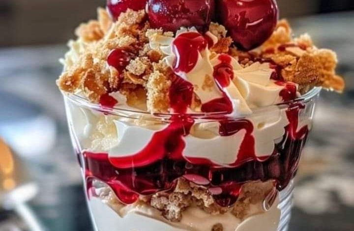 This cherry cheesecake parfait is a delightful and visually appealing dessert that’s perfect for special occasions or as a refreshing treat. The combination of creamy cheesecake, crunchy crust, and sweet-tart cherry sauce makes it a crowd-pleaser.