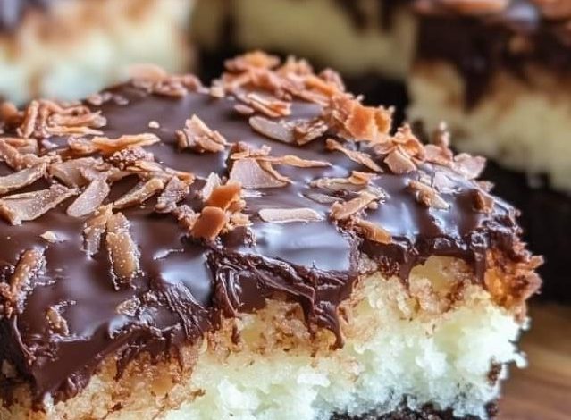 These bars are a delightful combination of rich chocolate and sweet coconut, making them a perfect treat for any occasion. Enjoy!