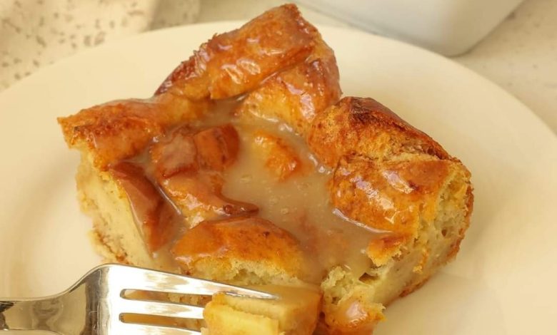 4. Combine and soak: Pour the custard mixture over the bread cubes, making sure all the bread is soaked. Gently press the bread down with a spoon to ensure it’s fully submerged. Let it sit for about 10-15 minutes to absorb the custard.