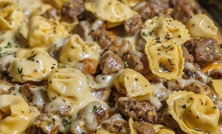 - Stir the cooked sausage back into the skillet with the tortellini.