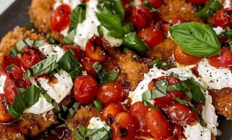 Crispy Chicken with Burrata, Roasted Cherry Tomatoes, and Basil