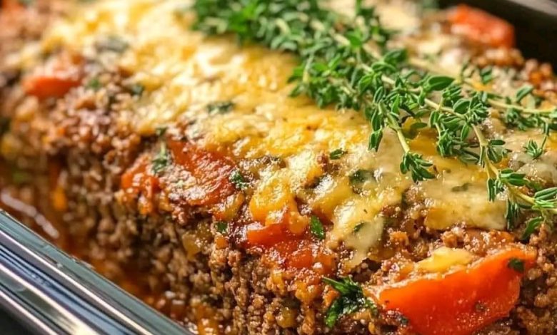 - Layer the cooked beef and vegetable mixture over the sauce.