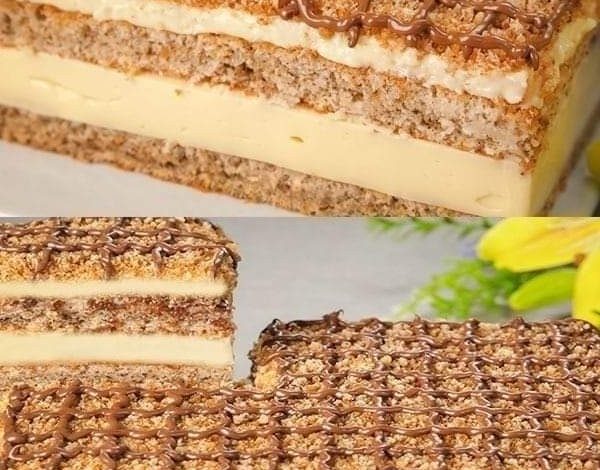 Layered Dessert with Graham Cracker Crust, Creamy Filling, and Chocolate Topping Recipe