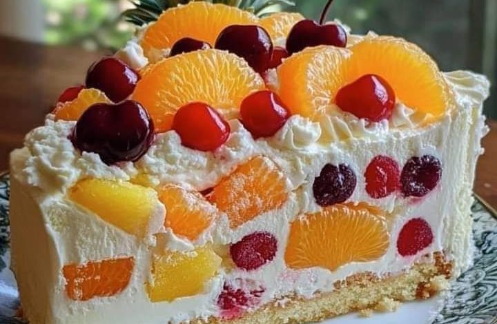 This no-bake fruit salad cake is light, creamy, and full of fruity flavors, making it a perfect dessert for warm weather or any festive occasion. Enjoy!