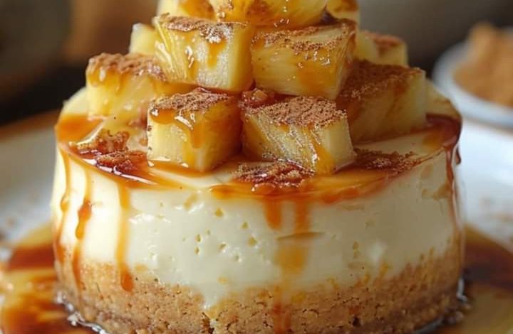 Pineapple Cheesecake with Caramel Sauce