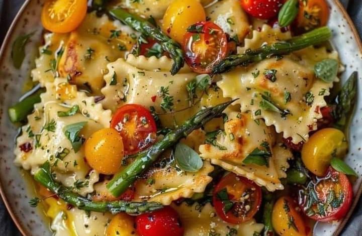 This dish is perfect for a quick weeknight dinner or a light, elegant meal. The combination of tender ravioli, crisp asparagus, and sweet cherry tomatoes makes for a delicious and visually appealing dish. Enjoy!