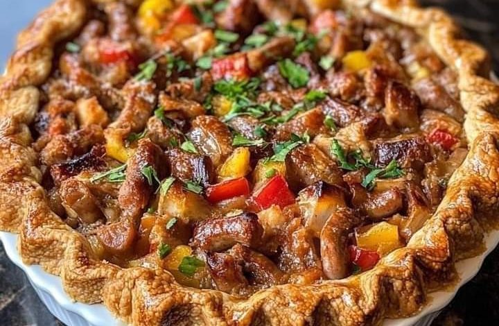 6. Assemble the Pie: Roll out your pie crust and place it in a pie dish. Pour the chicken and vegetable mixture into the pie shell.