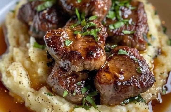 Seared Beef Tips with Creamy Mashed Potatoes