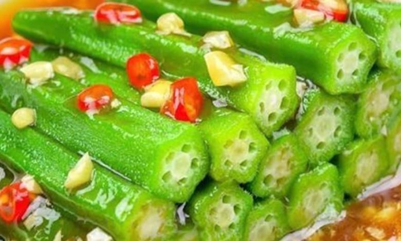 - Sprinkle sesame seeds and chopped cilantro over the okra.